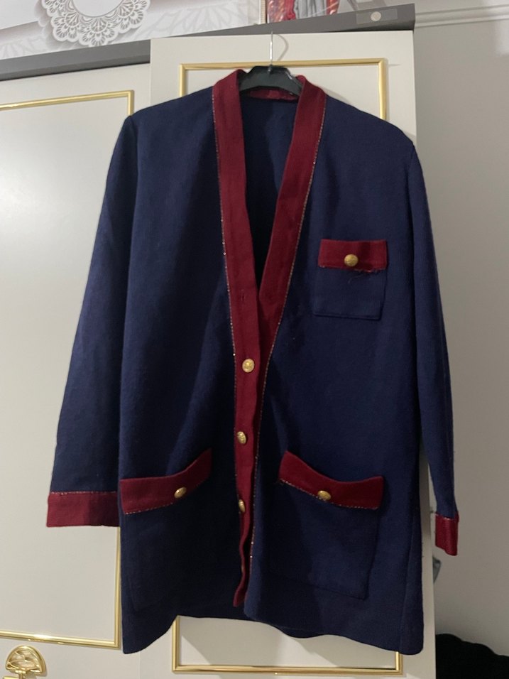 Düğmeli, uzun kollu bu kadın midi kaban, lacivert ve bordo renklerin kombinasyonuyla ofis kullanımı için uygundur. Normal kesim ve yakalıdır.