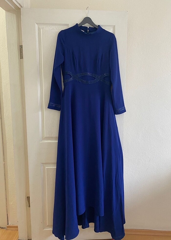 42 beden 1 kere giyilmiş şık lacivert tesettür abiye. Herhangi bir defa yırtık vs. Yoktur.