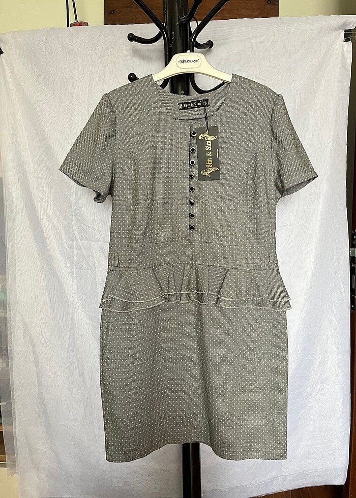 Şık yeni gri desenli ofis düğün nikah nişan davet elbise