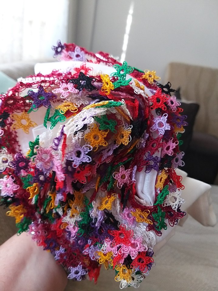 Renkli küçük çiçek desenli dantel detaylı, yumuşak tekstil kumaştan bohem tarzda kadın fularıdır. 80 e 80 eskinin pamuk yazmalardan motifler iğne oyasıdır çok sık yapılmıştır safece 1 kenarında 55 adet motif vardır başka yazmada degerlendirilirse 8 adet falan yazmaya yeter sayfamda başka seçeneklerde var bakabilirsiniz