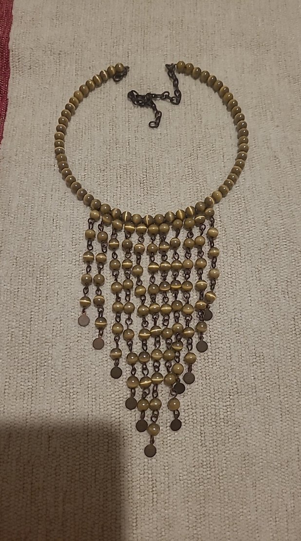 Boncuklarla bezeli gerdanlık tarzı şelale kolye.