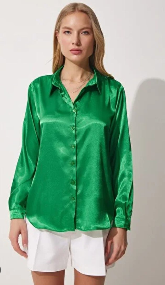 Şık ve Dökümlü Saten Yeşil Gömlek