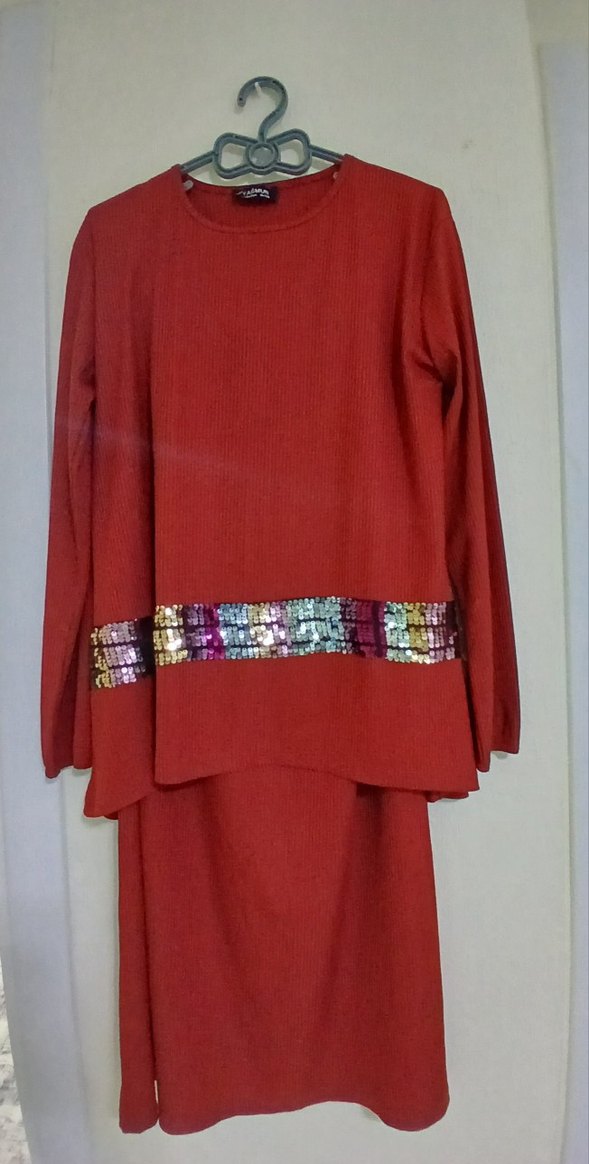 ✨ Ürün Bilgisi: İki parça kiremit rengi takım: Üst ve etek Bel kısmında rengârenk payet detayı Yumuşak ve rahat kumaş Şık ve zarif duruş Beden: XL