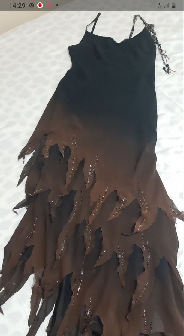 Kahverengi ve siyah renklerin iç içe geçmesi, parçalı uçuşan modeli, boncuklu omuz detayı ile fark yaratmamanız mümkün değil.. 36-38 bedene uygun.