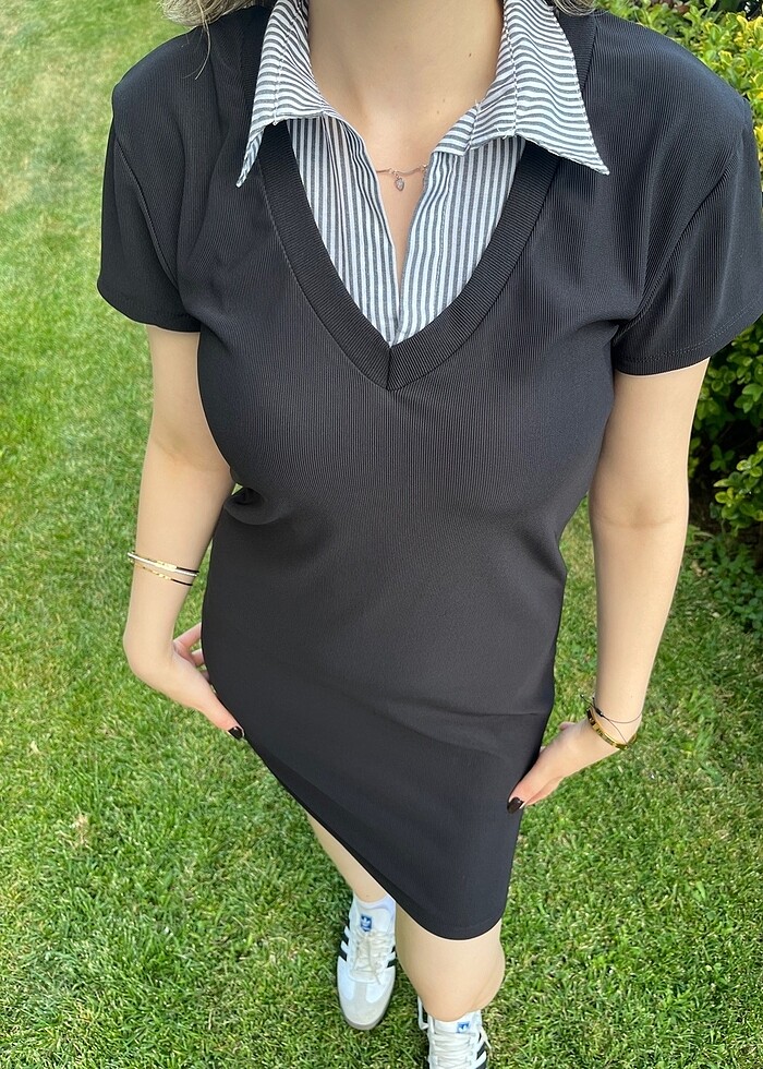 Her Beden Mevcuttur Şık Yakalı Siyah Elbise ✨ Zarif ve Modern: İş Hayatından Günlük Şıklığa Kadar Her Anınızda Tarzınızı Yansıtın! Bu özel layered tasarım elbise ile gardırobunuzda fark yaratın! Çizgili gömlek detayı ile siyah elbise kombininin mükemmel uyumu hem iş hayatınız hem de özel günleriniz için ideal