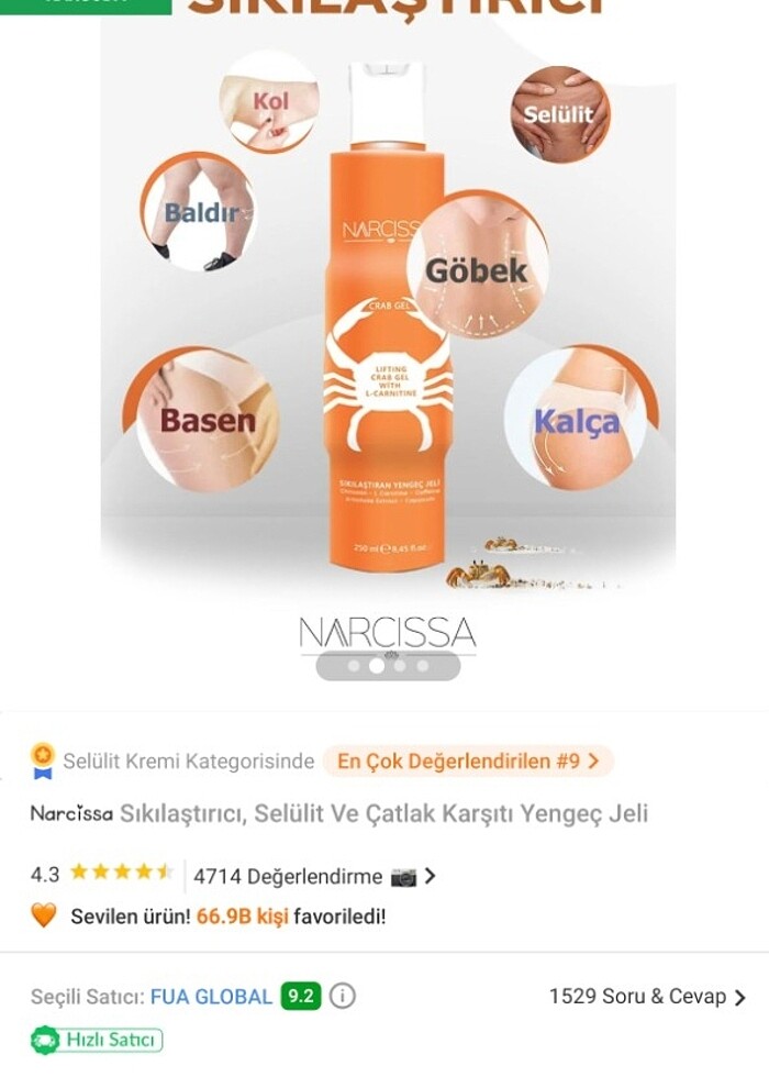 Sıkılaştırıcı selülit ve çatlak karşıtı yengeç jeli