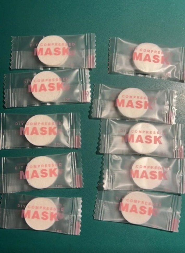 Sıvıya batırıldığında genişleyen sıkıştırılmış maske tabletleri. Kolay taşınabilir ve pratik kullanım sağlar. ♀️