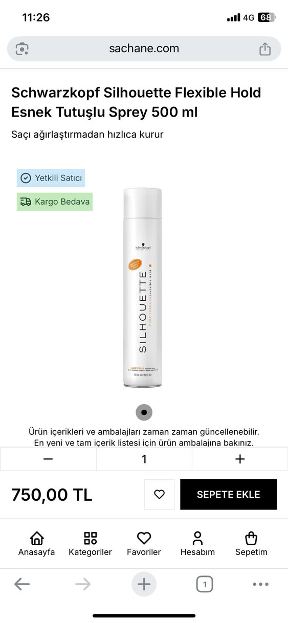 Silhouette esnek tutuşlu sprey, saçı ağırlaştırmadan hızlı kurur. 500 ml. Birkaç kez kullanıldı. Özellikle ince telli saçlar için başarılı. Ağırlaştırma yapmıyor. Ürün fazlalalığından satıyorum. 1 ay önce açıldı.