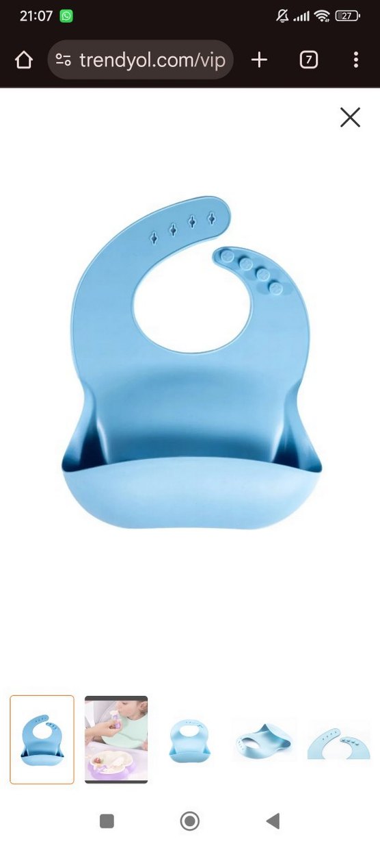 Bir iki kez kullanıldı sadece.silikon olduğu için leke tutmaz kolay temizlenir,önü cepli,boyun kısmı ayarlanabilir mama önlüğü