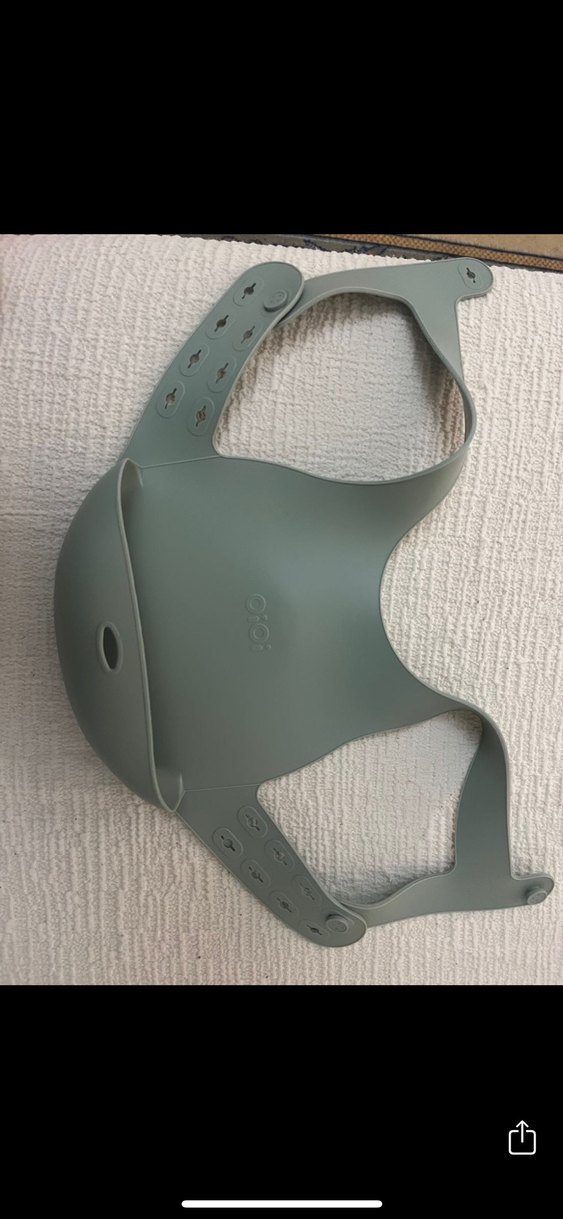 Ayarlanabilir kayış ve döküntüleri yakalayan derin cepli gri silikon bebek önlüğü. Sayılı kullanıldı paketiyle gönderilecektir paketi kitlenmiyor