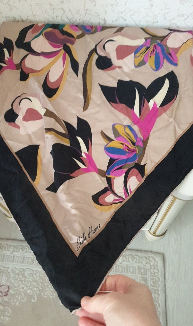 rengi cok guzel yuzde yuz ipek ignw izleri var sadece siyah eşarp kullandığım için satıyorum