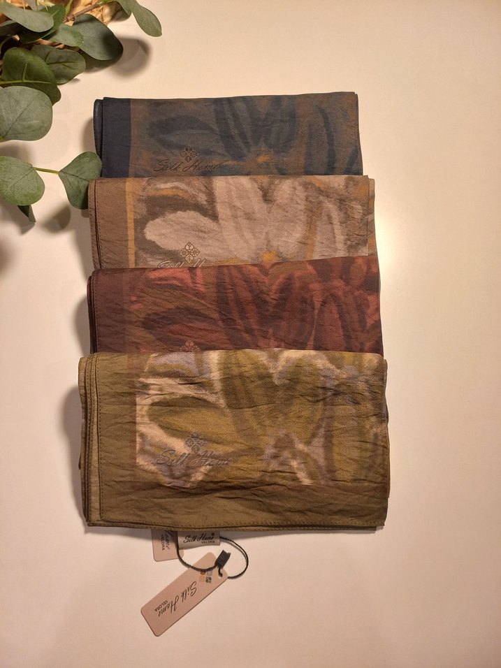 Kadınlar için ipek dokulu, kahverengi tonlarda canlı, dökümlü bohem tarzda vintage eşarp