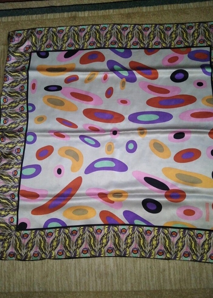 Daniela çiçarelli marka ipek eşarp renkleri çok güzel İpek eşarp kullanıma bağlı iğne izleri var