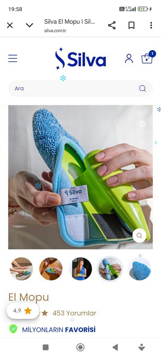 Silva marka el mopu etkili temizlik için dokulu yüzeye ve rahat tutuş için ayarlanabilir kayışa sahiptir.