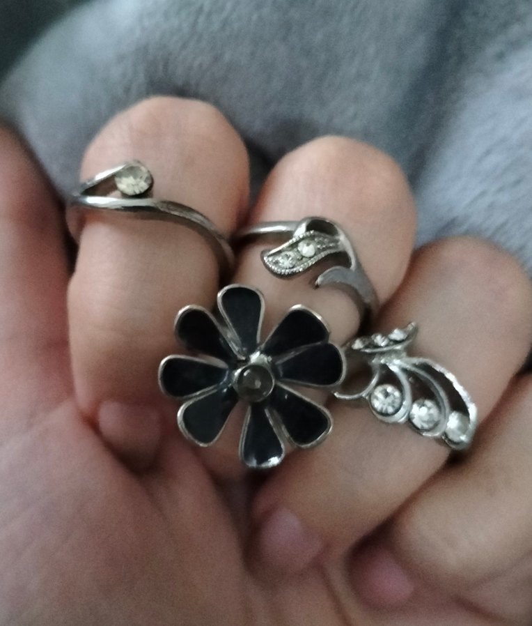 Siyah gotik yüzük, çiçek desenli ve tokalı detaylara sahip. Vintage ve bohem tarzları birleştirir, düğün için uygun koyu retro görünüm sunar.