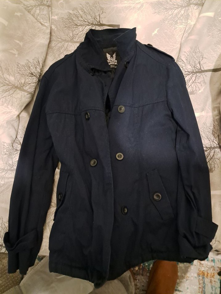 Marka: Silver Hawk Beden: Large (L) Model: Askeri kesim (Military), dik yakalı, düğmeli, apoletli şık mont. Renk: Koyu Lacivert. Ürün Özellikleri:İçi kapitone astarlıdır (elyaf dolgulu), bu sayede ince görünmesine rağmen sıcak tutar.Kumaşı tok ve kalitelidir. Cepleri geniştir. Ürün genel olarak temizdir, düğmeleri tamdır.Kumaşın bir noktasında kullanıma bağlı ip çekilmesi (zedelenme) mevcuttur. Fotoğraflarda yakından çektim, görebilirsiniz. Delik veya yırtık değildir, sadece yüzeyde iz vardır.Günlük kullanımda veya işe gidip gelirken giymek için sağlam ve sıcak tutan bir monttur.