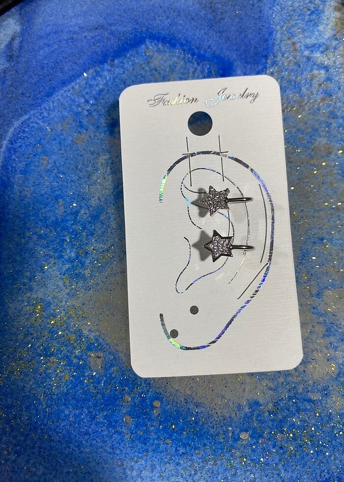 Silver iki yıldız earcuff küpe
