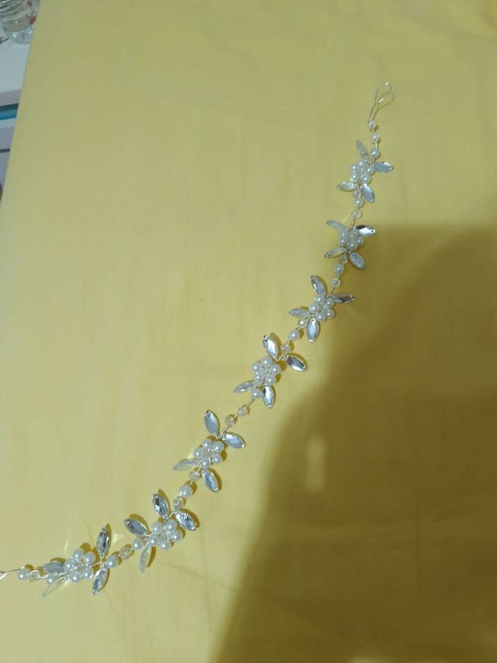 silver renkli, cam boncuklarla süslenmiş çiçek desenli saç aksesuarı, bohem ve retro tarzlar için uygundur.
