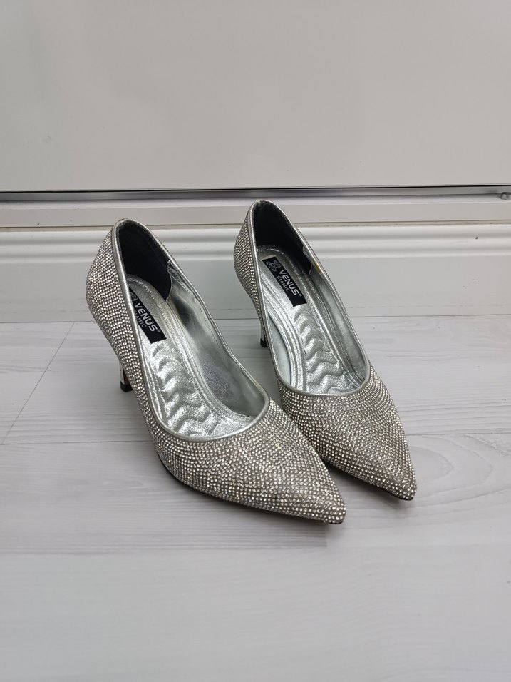 Silver Taşlı Stiletto Topuklu Ayakkabı