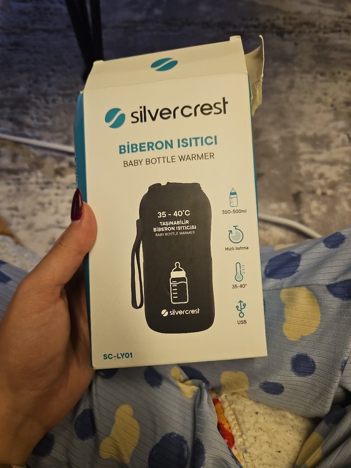 Silvercrest bebek biberon ısıtıcısı, 35-40°C arasında hızlı ısıtma sağlar ve 360-500ml şişelere uygundur. USB ile çalışır.