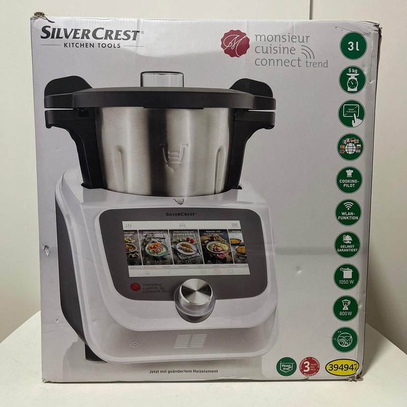 SilverCrest Monsieur Cuisine Connect Trend akıllı mutfak robotu, mutfakta zamandan tasarruf etmenizi sağlayan, yemek yapmayı hem kolay hem de keyifli hale getiren çok fonksiyonlu bir yardımcıdır. Öne Çıkan Özellikler: 7” dokunmatik renkli ekran Entegre Wi-Fi bağlantısı ve online tarif kütüphanesi Yoğurma, doğrama, karıştırma, çırpma, buharda pişirme, karamelize etme ve daha fazlası Hassas tartı özelliği (gram hassasiyetinde ölçüm) Geniş paslanmaz çelik hazne (yaklaşık 3L kullanım kapasitesi) “800 W motor, 1 050 W ısıtma gücü.” Çocuk kilidi ve güvenlik özellikleri Neler Yapabilirsiniz? Çorba, sos, hamur, tatlı, smoothie, bebek maması hazırlayabilirsiniz. Et, sebze ve balıkları buharda pişirebilirsiniz. Tek cihazla doğrama, karıştırma, yoğurma gibi birçok işlemi kolayca gerçekleştirebilirsiniz.