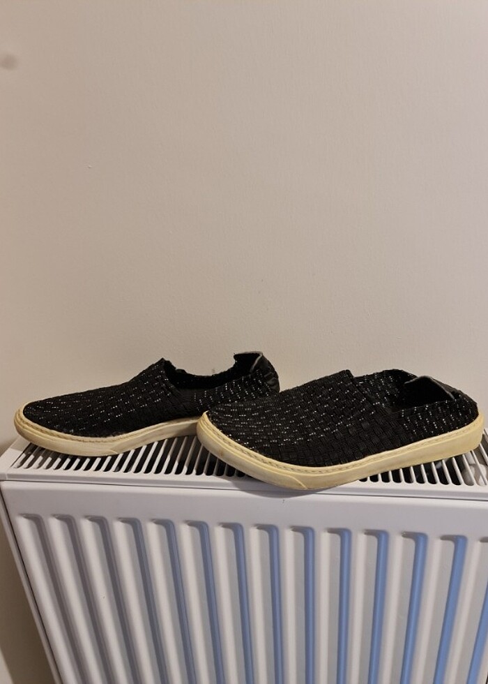 Espadril tarzı, esnek yapılı ayakkabı. Kusuru yok sadece altları biraz sararmıştır