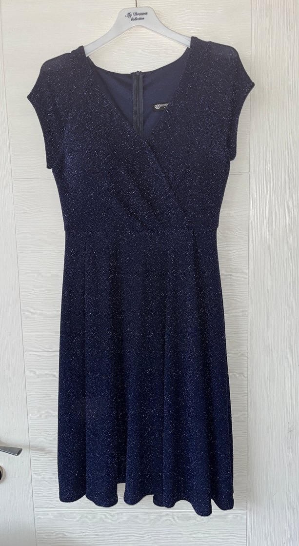 Sim detaylı, V yakalı ve kolsuz lacivert uzun abiye elbise, ofis için modern ve şık bir görünüm sunar. ✨