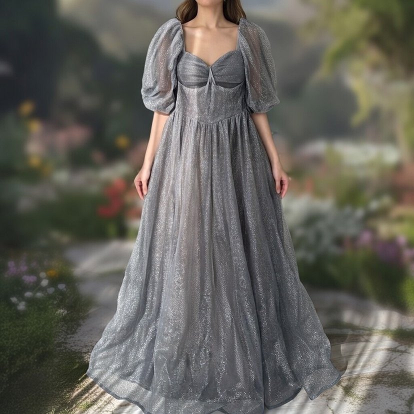 Sim detaylı, uzun ve gri renkte, V yakalı, askılı kollu, klasik ve gösterişli gotik tarzda nişan elbisesi. Gri-Antrasit Simli Nişan Abiye Elbisesi sadece 1 kez giyildi ✨