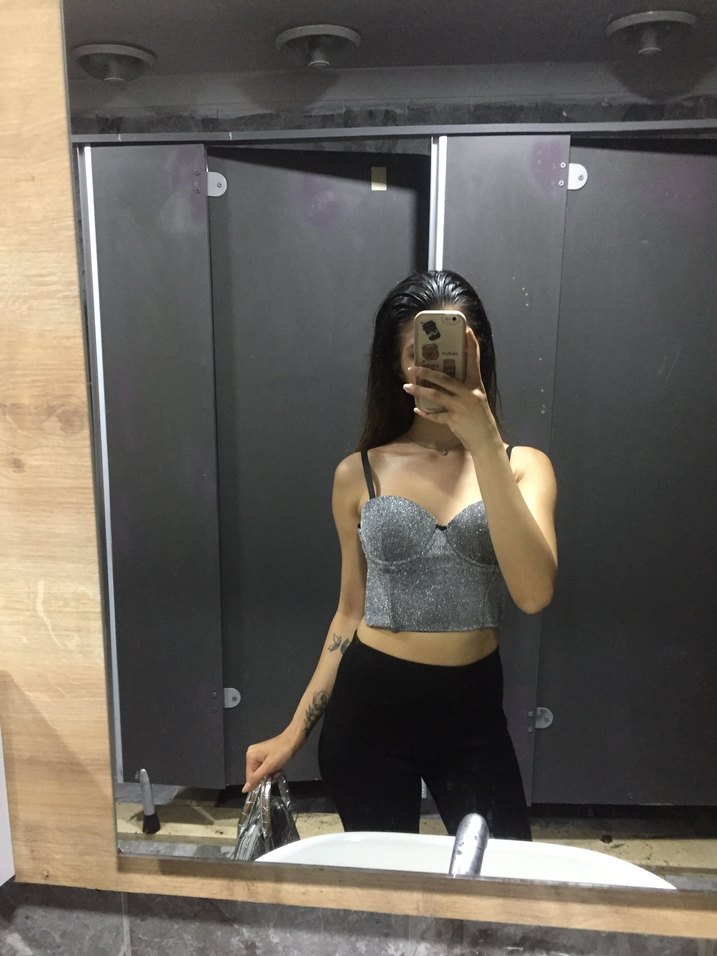 Sim detaylı, korse gibi gri mini büstiyer. Askılı ve straplez yakaya sahip, sokak modasına uygun. İsterseniz askıları çıkartabilirsiniz ( askısız gönderilecektir)