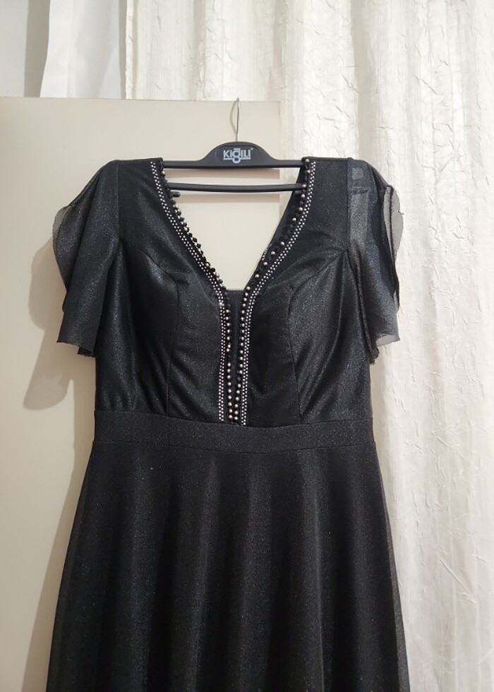 Ürün bir kez kullanılmıştır. Yaka kısmındaki boncuklarda kopmalar var dilerseniz kalanları da koparıp kullanıma devam edebilirsiniz.