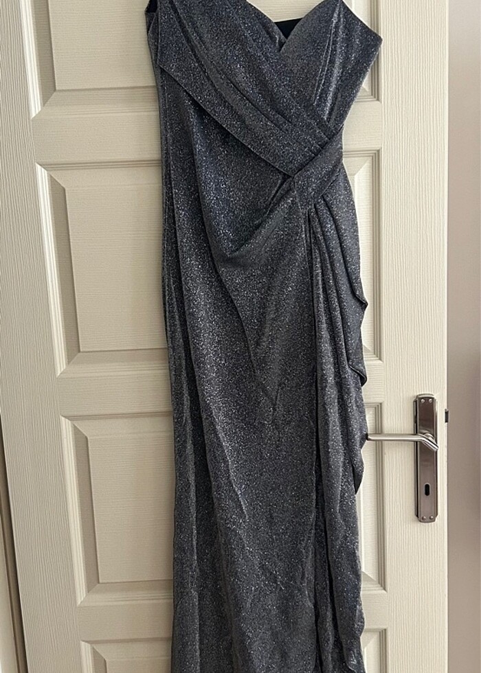 Gri simli arkası uzun balık model yırtmaçlı abiye Simli içi südyenli Sadece 1 kez giyildi rahat ve şık 38-40 beden rahatlıkla olur #simliabiye #gri #balık #kalem #elbise