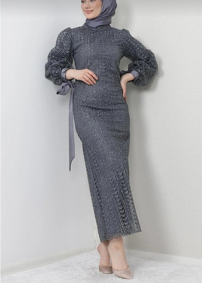 2 defa giyildi hiçbir sorunu yok. Işıl ışıl rengi koyu gri #simli #abiye #tesettür #elbise #parlak
