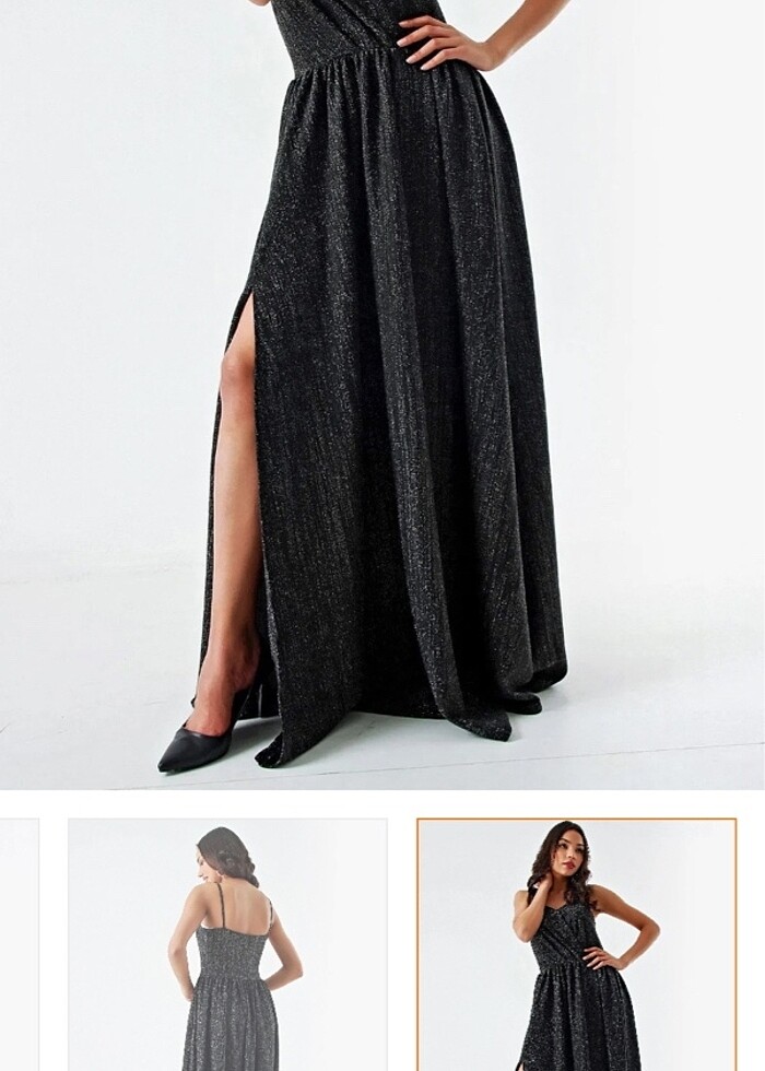 Ürünü kendi nişanımda yalnızca bir kere giydim 2 saat Tadilat yapıldı Boy 1,55 Topuklu ayakkabı 8cm kullandım O şekilde yere kadar uzanıyor boyu Kumaşı biraz şnce kendiliğinden yırtmacı mevcut Siyah simli simleri dökülme yapmıyor
