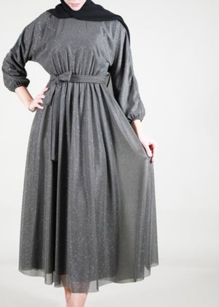 Ürün boyu 135 cm ' dir . Küçük defoları mevcuttur . Yalnızca bir iki kez kullanılmıştır . Bedeni standarttır . Her bedene uygundur . Gri simli abiyedir .