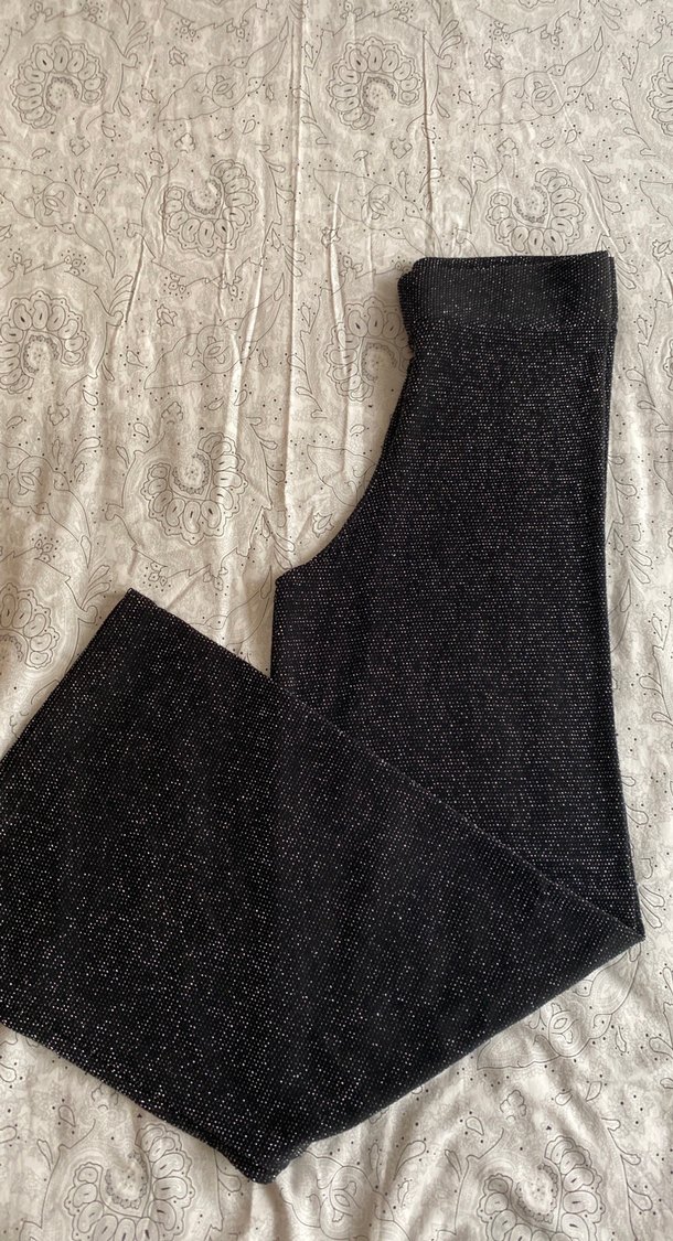 Yumuşak kumaş, dökümlü bol paça gri sim ip detaylı parlak pantolon. Şık zamanlar için uygundur