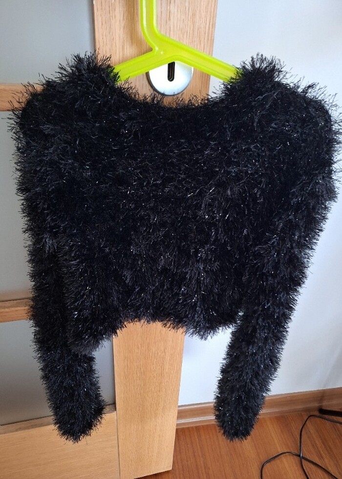 Annemizin ördüğü yumuşacık siyah simli kazak;) Kazak boyu 30 xm Kol boyu 45 cm elastik yumuşacık parlak kazak