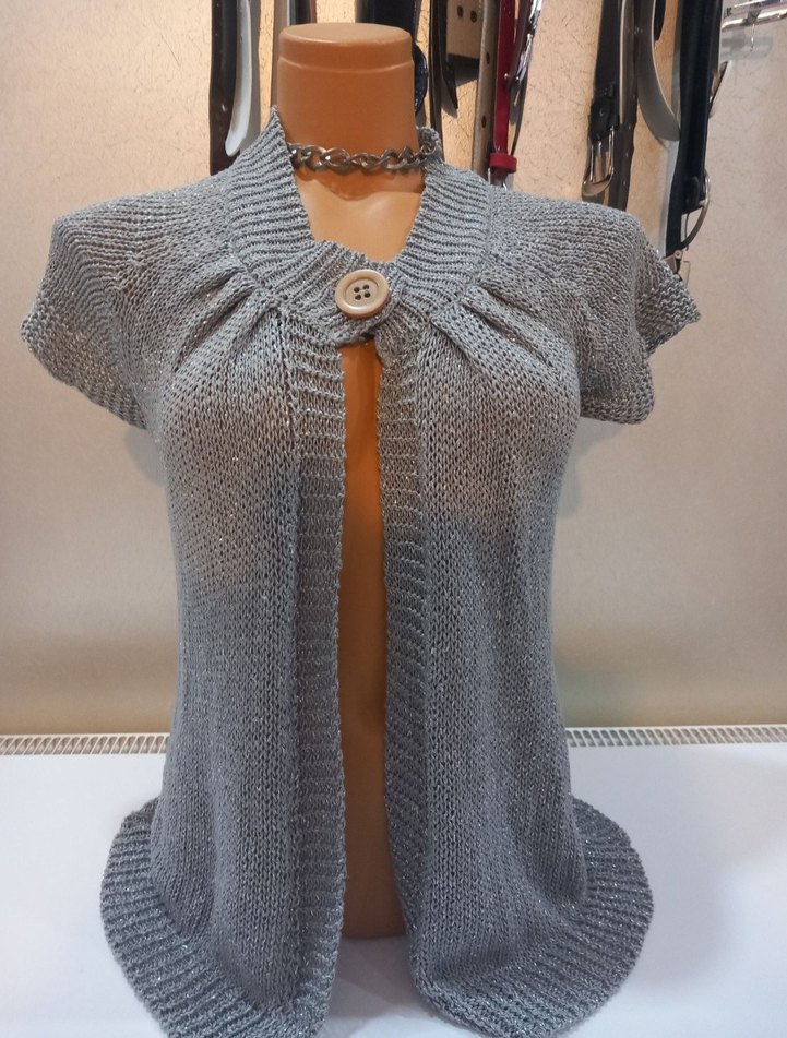 Acil satıyorum indirim için yazabilirsiniz !!!kısa kollu, tek düğmeli, simli gri hırka. Hiç giyilmedi.