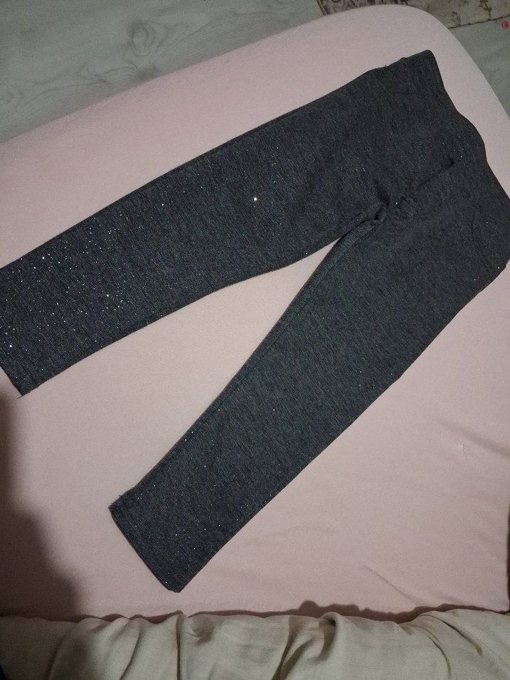 Simli detaylara sahip gri denim kız taytı, sokak stili için uygun ve rahat bir seçenek. ✨etiketini kesmişim ama 12 18 hatta 2 yine görüyor bu tayt
