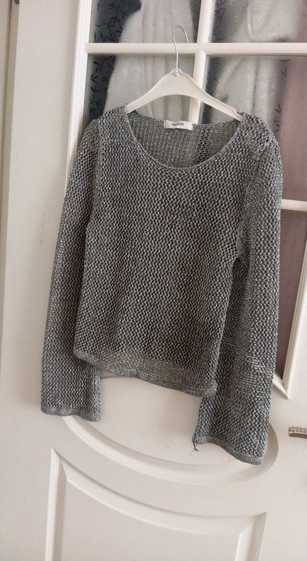 simli Gri Örgü Kadın Kazak