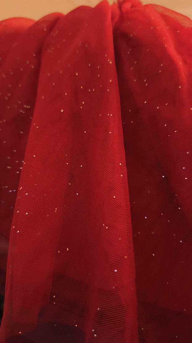 Küçük parlak detaylara sahip, ince tül kumaştan beli lastikli etek