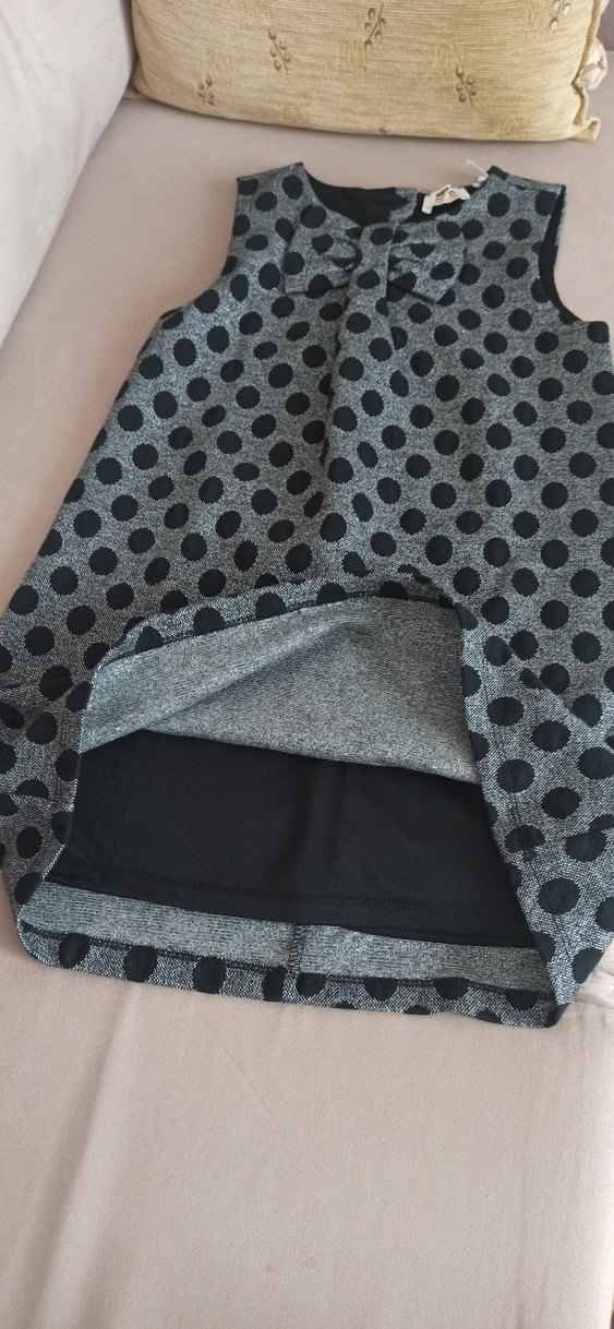 Koton kids marka 7-8 yaş simli kumaş üzerine puantiyeli yumuşak kullanışlı kolsuz astarlı kolsuz kız çocuğu elbisesi..Jile olarak ta kullanıma uygundur..Yeni gibidir..