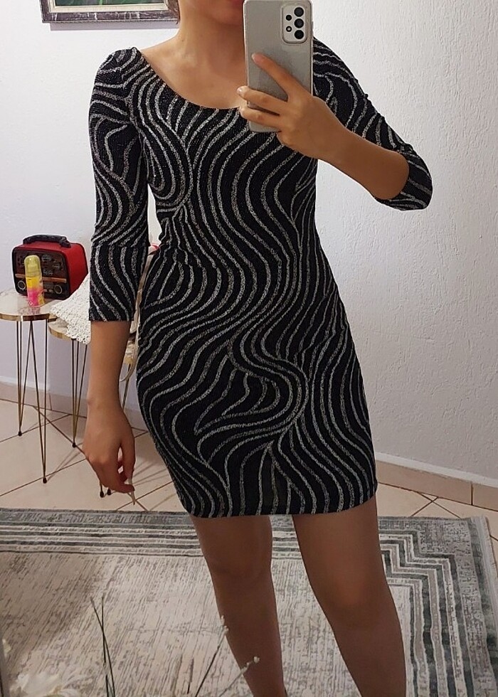 Simli mini gece elbisesi sırt dekolteli. 1 kere giyildi. Kısa geldiği için satıyorum.