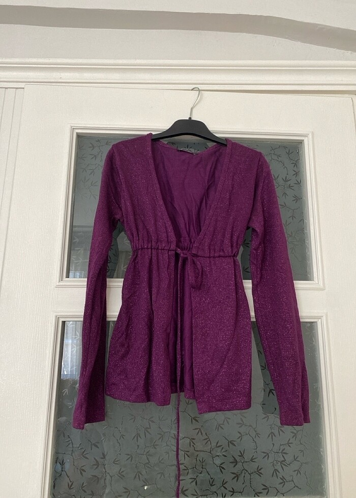 Simli Bağcıklı Mor hırka Standart beden Hiç giyilmedi tamamen iyi durumda