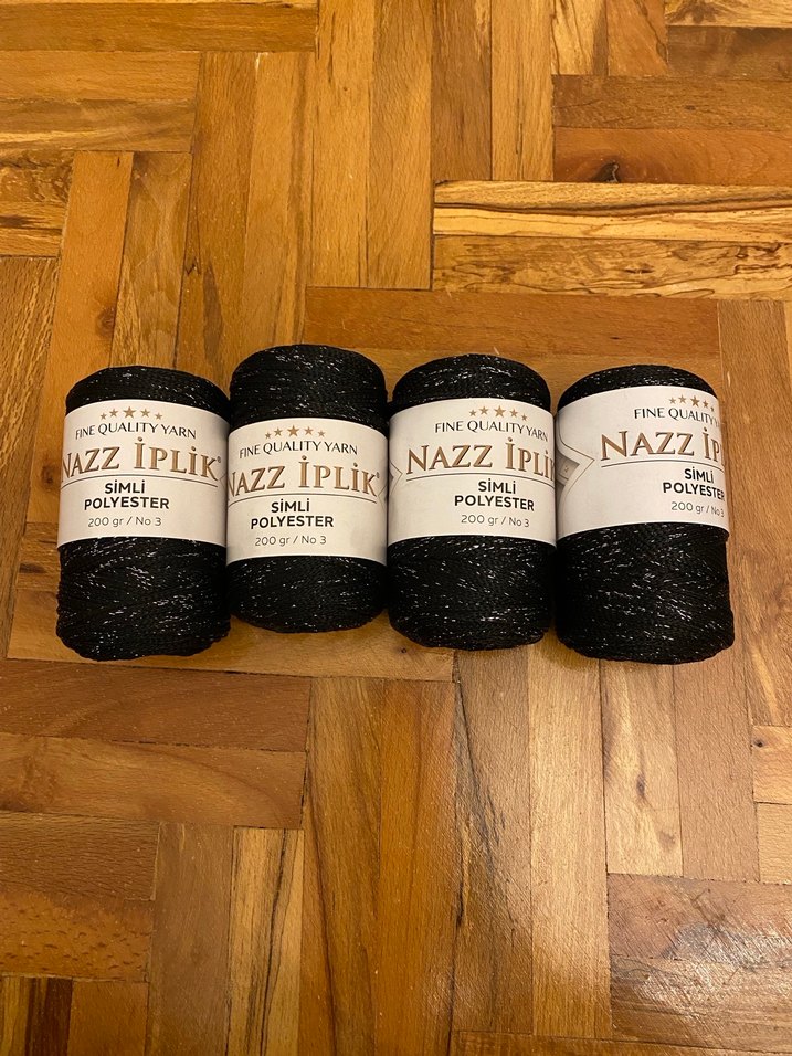 200 gram ağırlığında, simli siyah polyester iplik rulolarından oluşan set, el işi ve örgü projeleri için uygundur. ✨ tanesi 120 4 tanesi 440 tldir