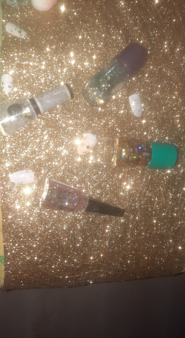 simli n renkli 11 adet oje az kullanılmış çoğu beyaz takma tirnak üzerine surulmushalini cektim ojelerin hepsi seffaftir uzerleinde simler pullar payetler vardir yani tirnak zemini beyaz durmayacak .hepsinin toplam fiyati kullanilmis olduklari icin bu fiyattan koydum .Ne kadar kullanildiklarini göstermek için son iki fotoğrafta dik şekilde içlerinde kalan miktar görünüyor ymi hepsi yariyariya kullanılmış ama kullanılmaya engel değiller sürülebilir vaziyettedir