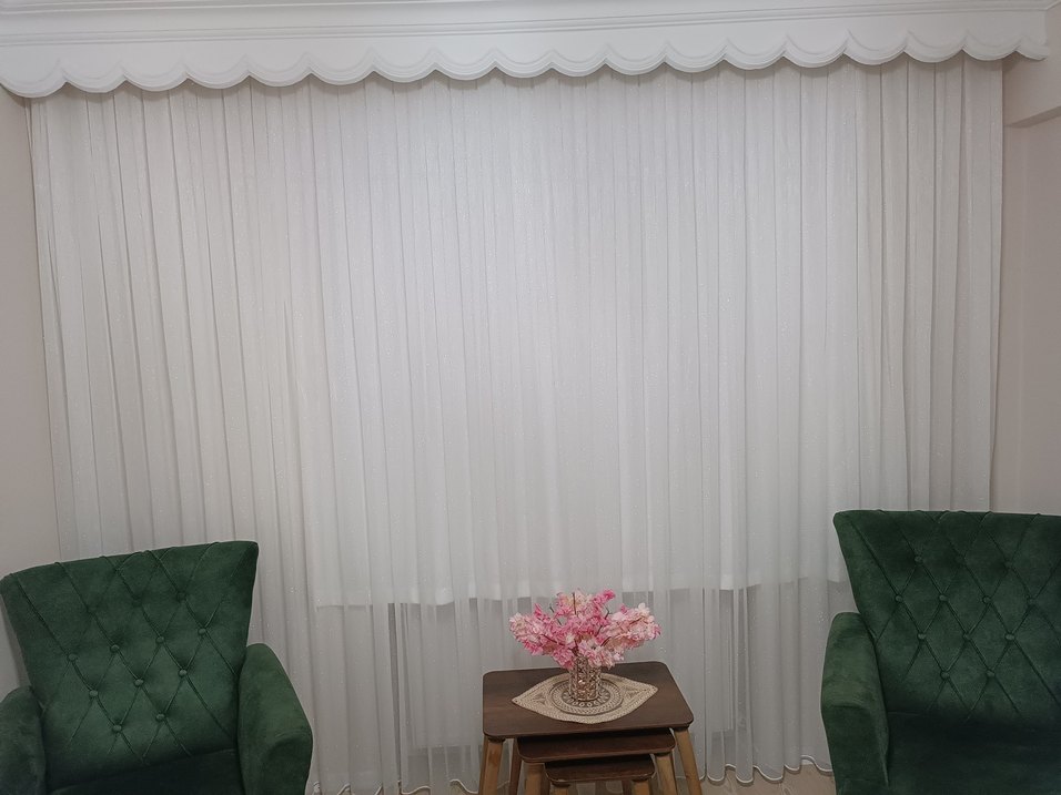 Modern ışıl ışıl, simli sakallı beyaz tül perde, hafif ve şık bir görünüm sunar. eni 340 boyu 262 cmdir kırışmaz ütü gerektirmez üst kalite