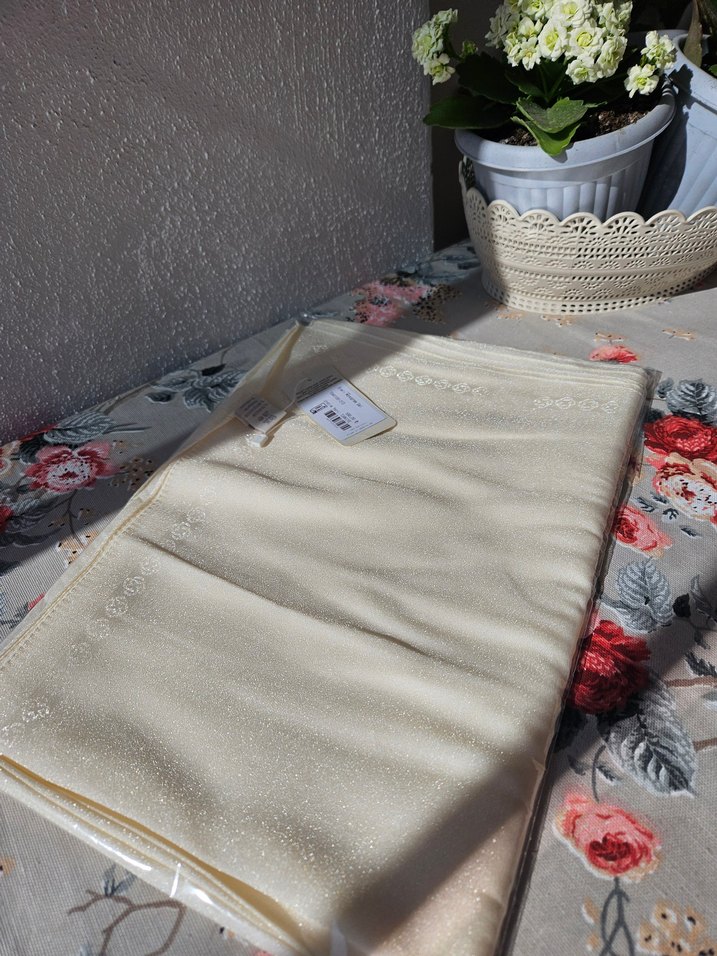 İşlemeli ve klasik tarzda ekru şal, simli ve şık, kenari motifli . tarziniza zarif bir dokunuş katar. sıfır ve paketlidr . gorseldeki.gibidir.