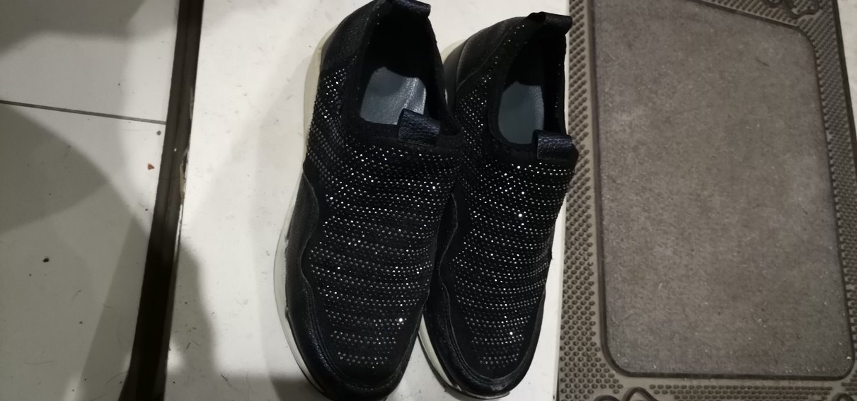 Simli Siyah Yılan Desenli Dolgu Topuk Spor Ayakkabı