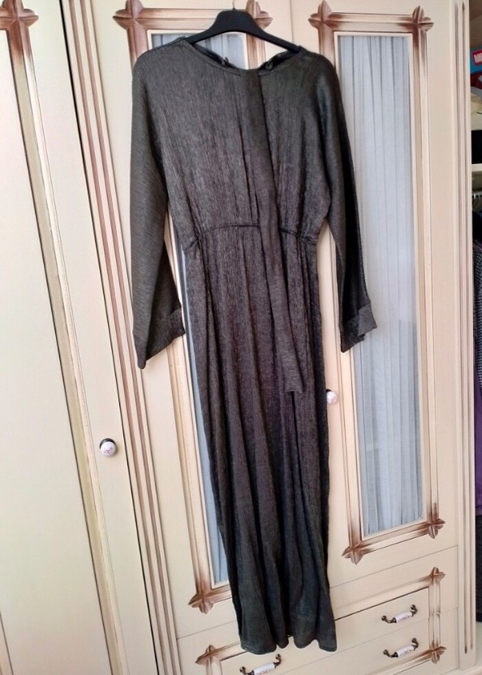 Özel dikimdir. Herhangi bir kusuru yok. Zarif sade şık bir elbise. Alana hayırlı olsun