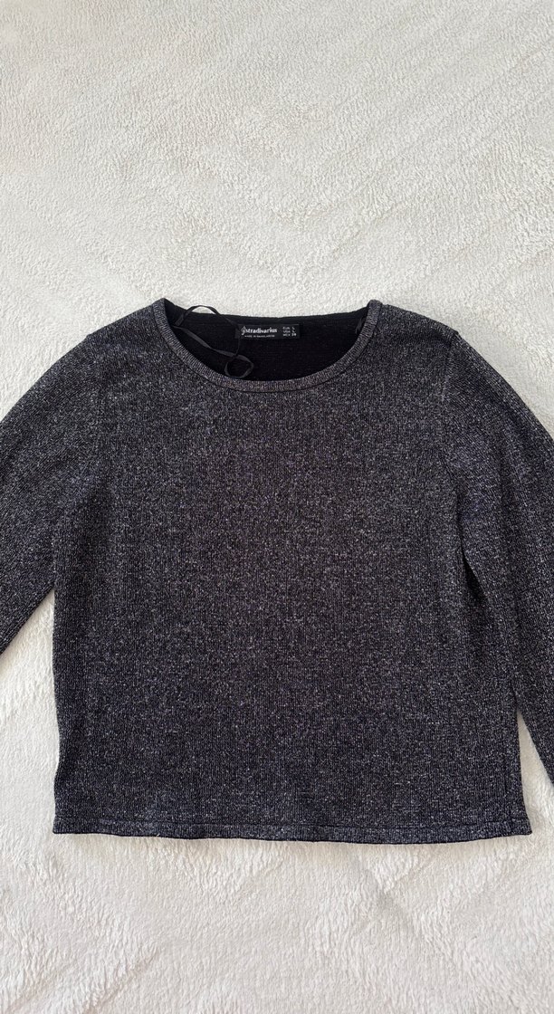 Simli Gri renk, yuvarlak yaka ve kısa crop bluz . Şık ve simli bir bluz